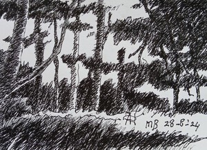 2000Vanaf de haven tekende ik de berg met Molivos (Lesbos, Griekenland) daarop.